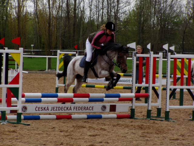ANETA a MARIKA 70/80cm, ZM Marika se přesně po roce dostala zase mezi koně, také to tak vypadalo, zmatená, protivná, ale později i veselá :)(nějaký ten kozlík na opracku taky proběhl:) ) 70/80cm jsme zajeli čistě. ZM náš 4. parkur a zatím nejvyšší- 4 trestné body v základu za vyhnutí překážky, kde jsem si Marušku nepohlídala. Dále úspěšně absolvolala 3jskok a další překážky. V půlce rozeskakování jsem však soutěž vzdala, protože mi už došli síly. 2 parkury za sebou po roce nezdá se to, ale je to sakra záhul s touhle mojí KOBYLOU! :)